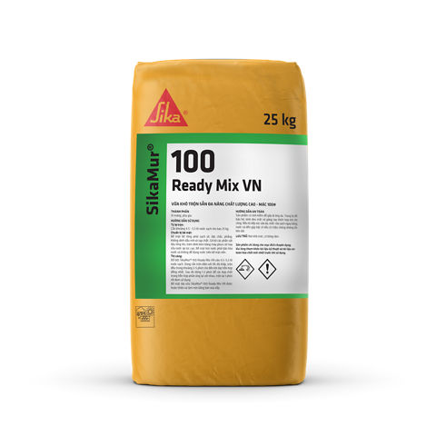 SikaMur®-100 Ready Mix VN là loại vữa khô chất lượng cao mác 100#, được trộn sẵn và đóng gói bao bì tại nhà máy. Thành phần chính gồm hỗn hợp chất kết dính xi măng Polyme, cát sấy khô được chọn lọc (loại bỏ hết bùn, sét và các tạp chất có hại) và các phụ gia đa chức năng khác.